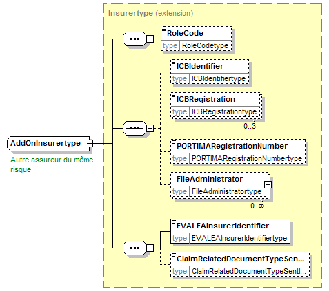 | source | <xsd:complexType name="AddOnInsurertype"> <xsd:annotation> <xsd:appinfo source="tb2Semantics">The insurer that covers a risk at the same time as the present insurer. Most of the time the other insurer subscribed other guarantees. Different from co-insurer.</xsd:appinfo> <xsd:appinfo source="tb2Edifact">(PTY+015)</xsd:appinfo> <xsd:documentation source="BusinessTerm" xml:lang="fr">Autre assureur du même risque</xsd:documentation> <xsd:documentation source="BusinessTerm" xml:lang="nl">Andere verzekeraar van hetzelfde risico</xsd:documentation> <xsd:documentation source="BusinessTerm" xml:lang="ge">Andere Gesellschaft, die dasselbe Risiko versichert</xsd:documentation> <xsd:documentation source="BusinessTerm" xml:lang="en">Other company insuring the same risk</xsd:documentation> <xsd:documentation source="BusinessDefinition" xml:lang="fr">Désignation d'une autre compagnie ayant également conclu une police couvrant le même risque ( soit en augmentation, soit en extension des garanties ). Il n'en est pas question ici de la coassurance.</xsd:documentation> <xsd:documentation source="BusinessDefinition" xml:lang="nl">Aanduiding van een andere maatschappij die eveneens een polis heeft afgesloten die hetzelfde risico dekt ( hetzij in verhoging, hetzij in uitbreiding van de waarborgen. Hier wordt niet een medeverzekeraar bedoeld.</xsd:documentation> <xsd:documentation source="BusinessDefinition" xml:lang="en">Party</xsd:documentation> </xsd:annotation> <xsd:complexContent> <xsd:extension base="Insurertype"/> </xsd:complexContent> </xsd:complexType> |