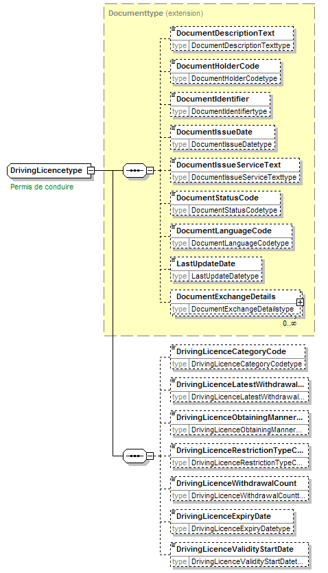 | children | DocumentDescriptionText DocumentHolderCode DocumentIdentifier DocumentIssueDate DocumentIssueServiceText DocumentStatusCode DocumentLanguageCode LastUpdateDate DocumentExchangeDetails DrivingLicenceCategoryCode DrivingLicenceLatestWithdrawalDate DrivingLicenceObtainingMannerCode DrivingLicenceRestrictionTypeCode DrivingLicenceWithdrawalCount DrivingLicenceExpiryDate DrivingLicenceValidityStartDate | ||||||||||||||||||
