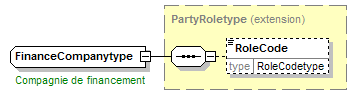 | source | <xsd:complexType name="FinanceCompanytype"> <xsd:annotation> <xsd:appinfo source="tb2Semantics">Company that lends money for hire-purchase transactions.</xsd:appinfo> <xsd:appinfo source="tb2Edifact">(PTY+016)</xsd:appinfo> <xsd:documentation source="BusinessTerm" xml:lang="fr">Compagnie de financement</xsd:documentation> <xsd:documentation source="BusinessTerm" xml:lang="nl">Financieringsmaatschappij</xsd:documentation> <xsd:documentation source="BusinessTerm" xml:lang="ge">Finanzierungsgesellschaft</xsd:documentation> <xsd:documentation source="BusinessTerm" xml:lang="en">Financing company</xsd:documentation> <xsd:documentation source="BusinessDefinition" xml:lang="fr">Identifie un intervenant.</xsd:documentation> <xsd:documentation source="BusinessDefinition" xml:lang="nl">Identificeert een betrokkene.</xsd:documentation> <xsd:documentation source="BusinessDefinition" xml:lang="en">Party</xsd:documentation> </xsd:annotation> <xsd:complexContent> <xsd:extension base="PartyRoletype"/> </xsd:complexContent> </xsd:complexType> |