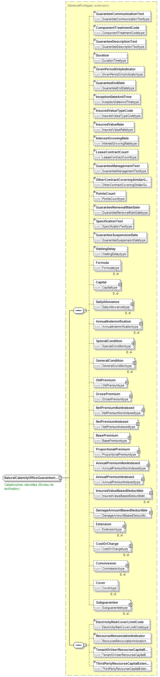 | children | GuaranteeCommunicationText ComponentTreatmentCode GuaranteeDescriptionText Duration GivenPeriodOnlyIndicator GuaranteeEndDate InceptionDateAndTime InsuredValueTypeCode InsuredValueRate InterestGrowingRate LeaseContractCount GuaranteeManagementText OtherContractCoveringSimilarGuaranteeIndicator PointsCount GuaranteeRenewalMainDate SpecificationText GuaranteeSuspensionDate WaitingDelay Formula Capital DailyAllowance AnnualIndemnification SpecialCondition GeneralCondition OldPremium GrossPremium NetPremiumNonIndexed NetPremiumIndexed BasePremium ProportionalPremium AnnualPremiumNonIndexed AnnualPremiumIndexed InsuredValueBasedDeductible DamageAmountBasedDeductible Extension CostOrCharge Commission Cover Subguarantee ElectricityRiskCoverLimitCode RecourseRenunciationIndicator TenantOrUserRecourseCapitalExtensionAmount ThirdPartyRecourseCapitalExtensionAmount | ||||||||||||||
