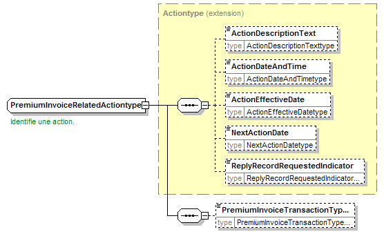| source | <xsd:complexType name="PremiumInvoiceRelatedActiontype"> <xsd:annotation> <xsd:appinfo source="tb2Semantics">An action related to a premium notification/invoice.</xsd:appinfo> <xsd:appinfo source="tb2Edifact">(ACT)</xsd:appinfo> <xsd:documentation source="BusinessDefinition" xml:lang="fr">Identifie une action.</xsd:documentation> <xsd:documentation source="BusinessDefinition" xml:lang="nl">Identificeert een actie.</xsd:documentation> <xsd:documentation source="BusinessDefinition" xml:lang="en">Action</xsd:documentation> <xsd:documentation source="BusinessTerm" xml:lang="en">Premium invoice related action</xsd:documentation> <xsd:documentation source="BusinessTerm" xml:lang="nl">Kwijting gerelateerde actie</xsd:documentation> <xsd:documentation source="BusinessTerm" xml:lang="fr">Acte de gestion de quittance</xsd:documentation> </xsd:annotation> <xsd:complexContent> <xsd:extension base="Actiontype"> <xsd:sequence> <xsd:element name="PremiumInvoiceTransactionTypeCode" type="PremiumInvoiceTransactionTypeCodetype" minOccurs="0"/> </xsd:sequence> </xsd:extension> </xsd:complexContent> </xsd:complexType> |
