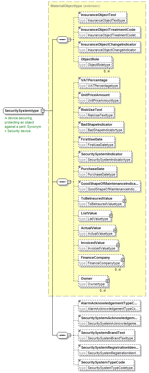 | children | InsuranceObjectText InsuranceObjectTreatmentCode InsuranceObjectChangeIndicator ObjectRole VATPercentage UnitPriceAmount RiskUseText BadShapeIndicator FirstUseDate SecuritySystemIndicator PurchaseDate GoodShapeOfMaintenanceIndicator ToBeInsuredValue ListValue ActualValue InvoicedValue FinanceCompany Owner AlarmAcknowledgementTypeCode SecuritySystemAcknowledgementBodyIdentificationCode SecuritySystemBrandText SecuritySystemRegistrationIdentifier SecuritySystemTypeCode | ||||||||||